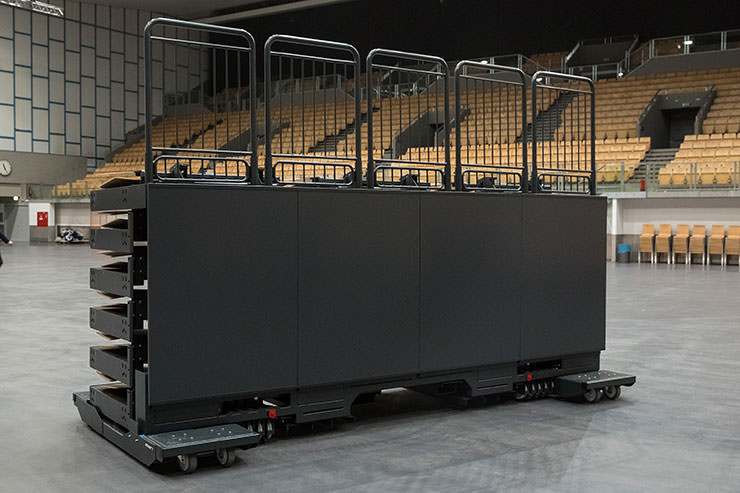 Leipzig Trade Fair Hall:Eins Germany ELAN TransFlex mobile Retractable Seating System ELAN Standworks